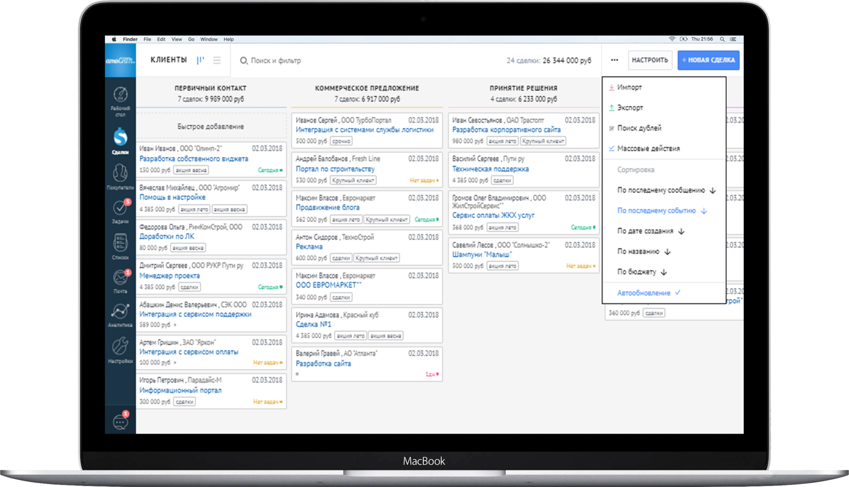 Систематизируем продажи на базе amoCRM как платформе, которая позволяет полностью спроектировать систему под клиента и при этом быть максимально простой и эффективной.